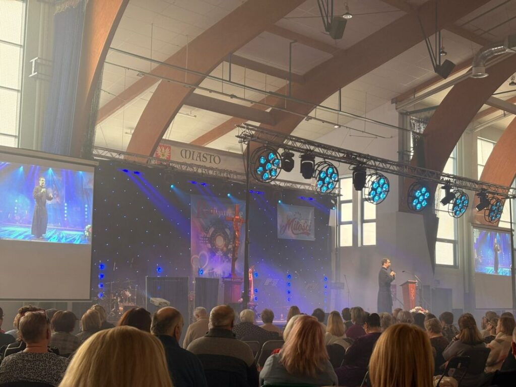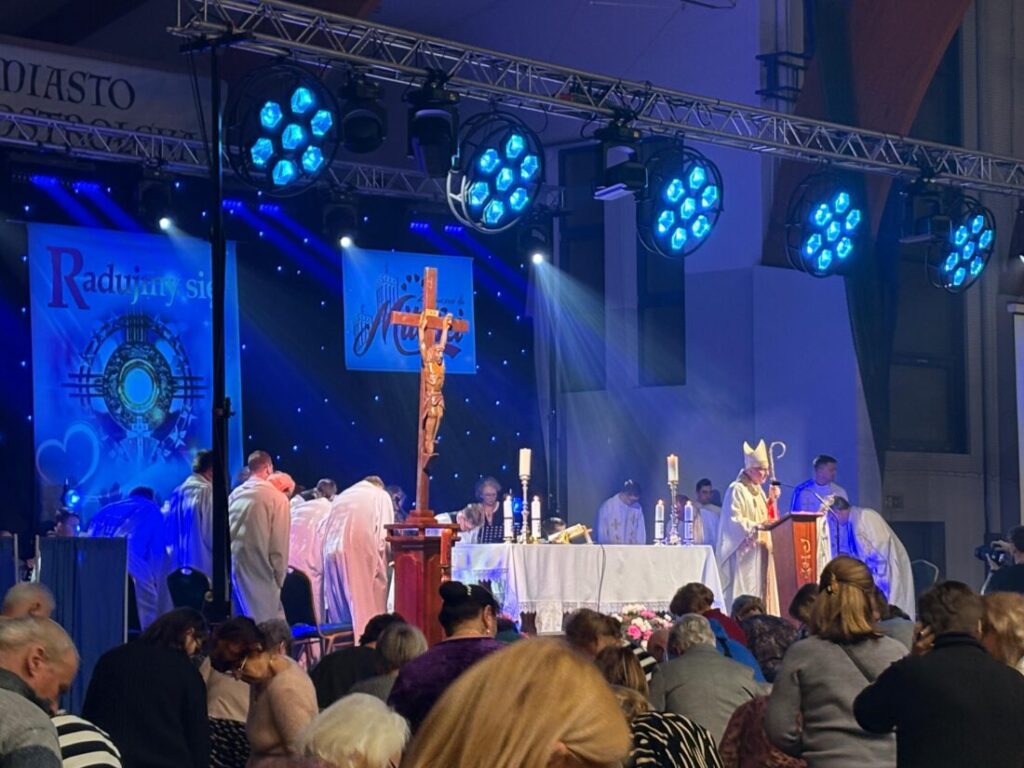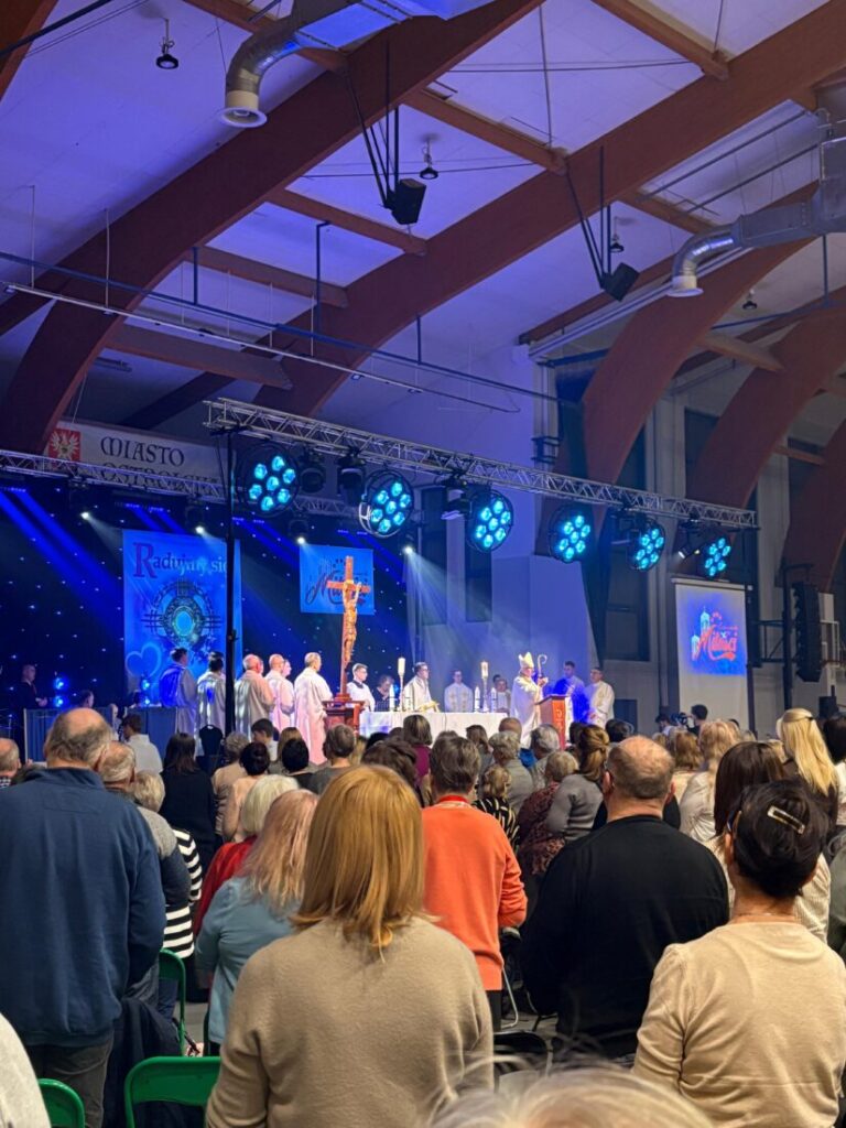 Dnia 7 lutego br. grupa naszych parafian uczestniczyła w charyzmatycznym spotkaniu modlitewnym pn. „Radujmy się”. Odbyło się ono w hali widowiskowo – sportowej im. Arkadiusza Gołasia w Ostrołęce. Mieliśmy przy tym okazję wysłuchać prelekcji ks. dr Zbigniewa Skuzy, o. Remigiusza Recława oraz Krzysztofa Sowińskiego. Uroczystej Eucharystii przewodniczył bp Janusz Stepnowski – Pasterz Kościoła Łomżyńskiego.